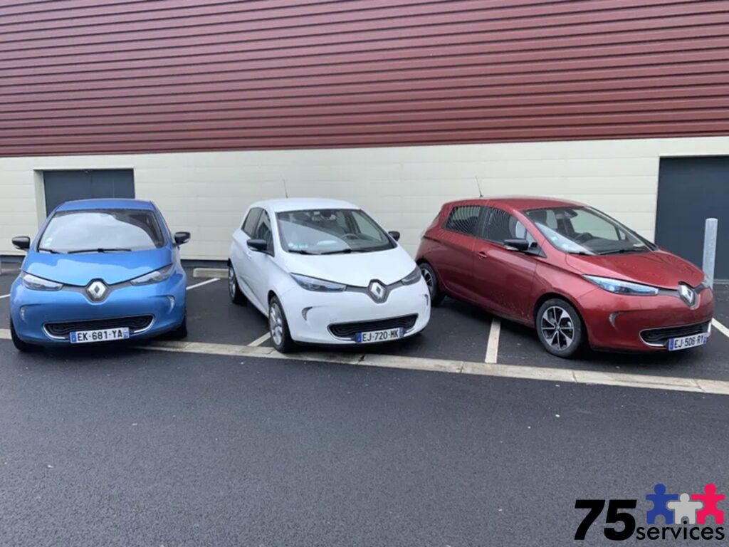 Interventions en Île-de-France avec véhicules électriques et transports en commun.